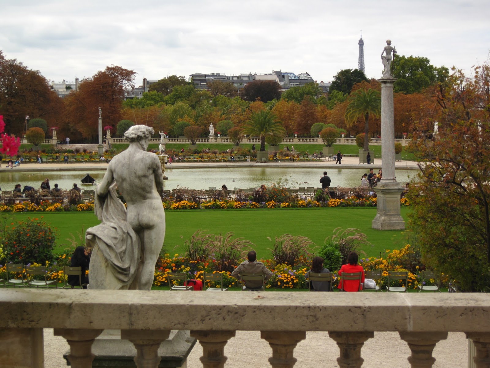 The Palais du Luxembourg was built for Marie de Medici after Henri IV's death. It was to remind her of her native Florence. It was designed in the style of the Pitti Palace. By the time it was finished in 1631, she had been banished. It remained a royal palace until the Revolution when it was used as a prison. During World War II it was occupied by the German Luftwaffe. Today it houses the French Senat.A view of the octagonal pool where kids love to sail boats. You can see the Eiffel Tower in the distance. No sailors or boats for rent today.